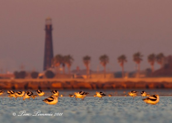 Started out with a trip to Bolivar before sunrise. It was 27 deg at 6:30 a.m. when I arrived at the beach and came across my friend David who has been frequenting the flats for the past few months. Got into my waders, two sweatshirts, my new coat, and gloves and headed out. The tide was low at the onset with several sand bars visible off shore. I went further out and David hugged the shoreline. There were lots of Avocets but they were near the jetty. Found a spot hoping that the Avocets would come my way and laid down to wait for them. The tide then started to come in and I kept scooted backwards to try to stay on somewhat dry ground, to no avail. Mother Nature won that battle as I got wet several times after moving my position around on different sand bars. Finally took a stand on the last high ground in the area and was determined to wait out the Avocets. Once again, the tide kept rising and got inundated with water, again. This time I decided that I wasn’t going to move but to lay in the water for however long it took. The tide was coming up fast and the water went over the top of the ground pod, filling it.
