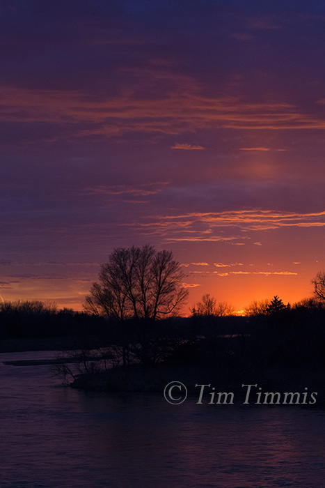 While trying to take Sandhill Crane photos as the sun went down, took my own advice of “look behind you as the best shot may be there”. Turned around and found a much better photo of the sun setting along the Platte River in Nebraska. Used negative exposure compensation and cranked up the ISO.