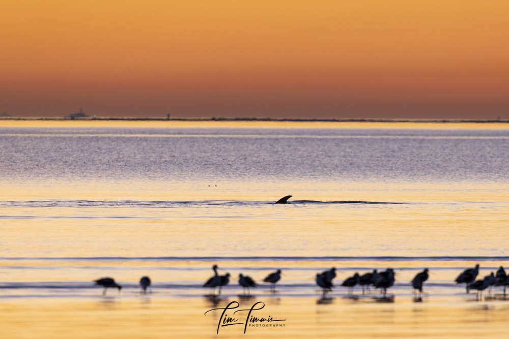 The surprise of the morning was seeing a fin coming out of the water behind a small flock of avocets, just offshore near the parking area. It was a dolphin hunting for fish, which was only the second time that I’ve seen a dolphin out there in the past 15 years. Took some video of him but missed the money shot when he jumped out of the water with a fish just off of his nose.