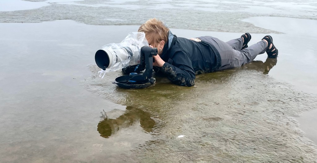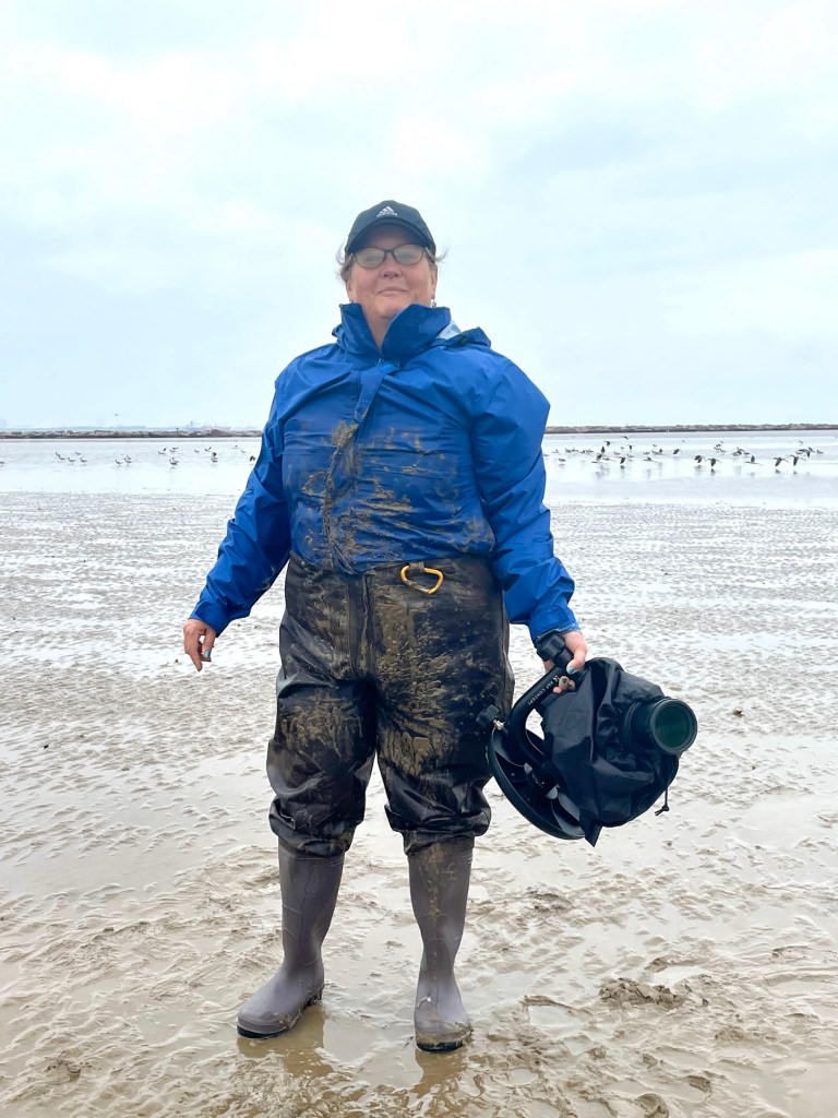 The mud was deep so had to take a selfie to show that it was a great day in the mudflats. One of the first times that the mud was so deep that it came over the top of my ground pod. Had to wade out in the gulf to wash off the mud from my boots before throwing them into a garbage bag for clean-up when I got home. Clean-up is a major pain but well worth the effort to get low level photos.