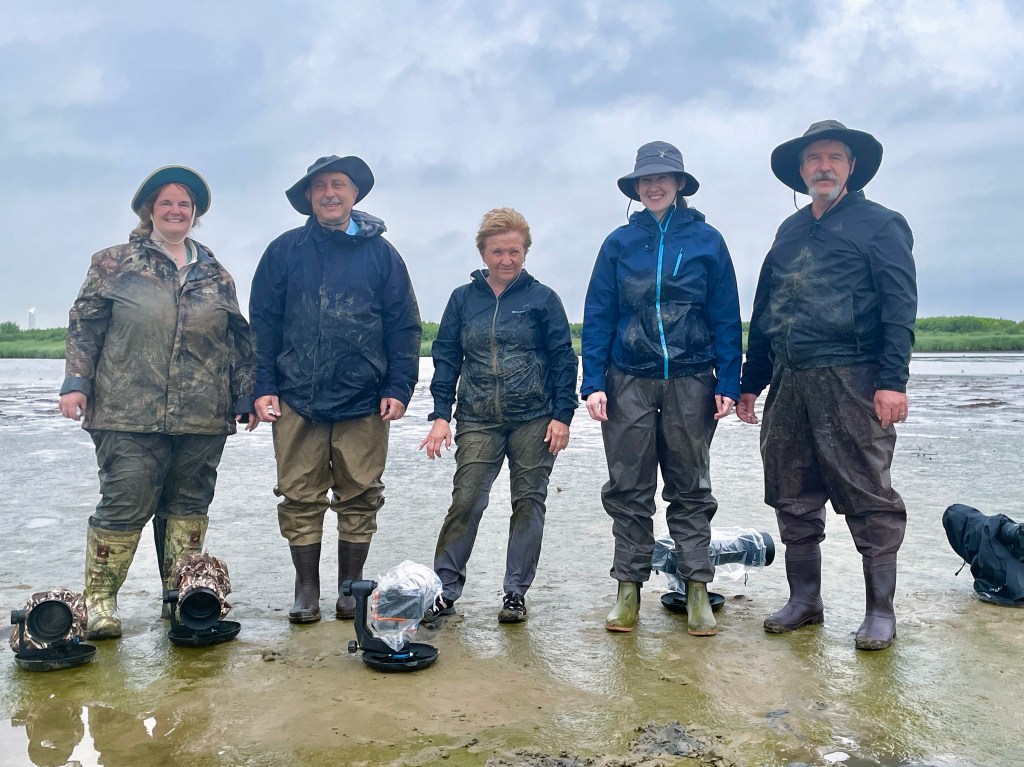 Here are some cell phone photos of the groups at Bolivar Flats, where they got the full ground pod treatment, including lying in some water, sand and mud. I always like to take photos of the groups at the end of the session to prove that they were active participants with getting down and dirty.