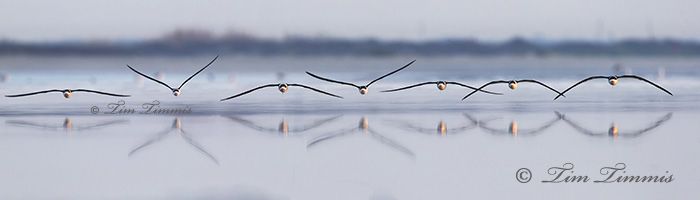 The normal flight path of Black Skimmers at Bolivar Flats is parallel with the shore line. Got lucky with this one as he was flying directly at me. My 7D did a good job of tracking the focus. Had to crank the ISO up to 800 to get the shutter speed above 1/100 sec. Taken just before sunrise while lying on a sand bar with my gound pod.