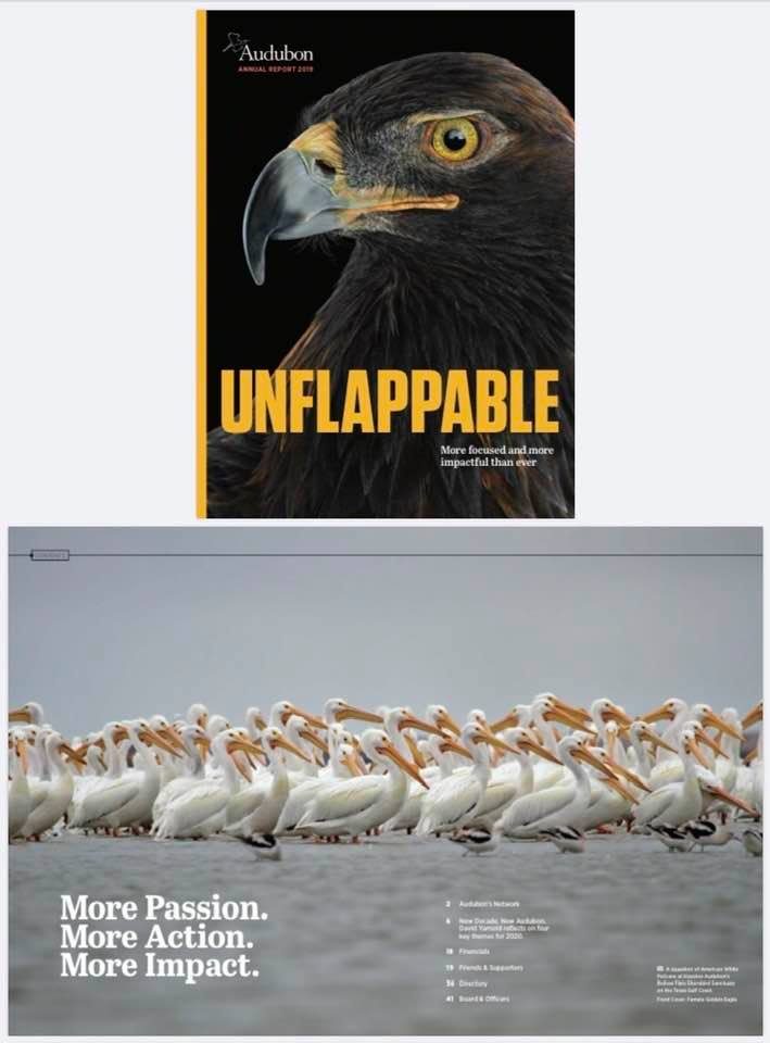 One of my pelican photos made the inside cover of the 2019 Audubon Annual Report recently. The Photography Director from Audubon contacted me in Feb about using this photo that they found on my website. Was very pleased that they reached out to me but also someone concerned that I did not recognize this photo. Had to dig through my website to find it. Next problem was to find the RAW file to reprocess a high resolution photo as it was taken back in 2011. Started digging through my current attached hard drives with no luck. Had to search the house for all of my external hard drives and finally found it on nearly the last hard drive.