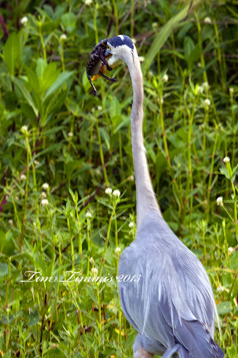 Had the ideal, one in a lifetime, photo opportunity with a Great Blue Heron grabbing a baby alligator. Found the GBH in the area where the babies were the previous weekend but momma gator was on the other side of the trail. Knew to keep an eye on the GBH just in case the action happened. I was trying to get a decent shot of the GBH when I made a couple of major errors right before the action hit. I turned the camera vertical, switched to the top most focusing point and used F16 to get the GBH in focus as he was full framed at 500mm. Immediately after I did that, the GBH struck and grabbed a little gator right in front of me. Had my flash going but it didn’t help much as I lost the focus point and only got a shutter speed of 1/25 to 1/30 sec. It happened too quick for me to recover and change settings. Oh well, it happens.