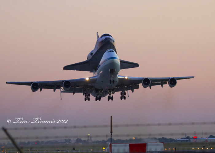 Got a front row seat for the final lift off of Space Shuttle Endeavor from Houston’s Ellington Field. Parked along hwy 3 at the end of the runway along with several hundred of my friends before sunrise and stood on the railroad tracks just outside the fence line. The first plane to launch was a commercial jet that took off to the east, in the opposite direction from where I was standing. Was a little worried that the shuttle would take off in that direction as well until a NASA jet took off towards me. On que, the 747 with Endeavor attached took off at 7:00 a.m., a little before sunrise. It was very cool to see, to say the least, including feeling the heat off of the 747’s engines.