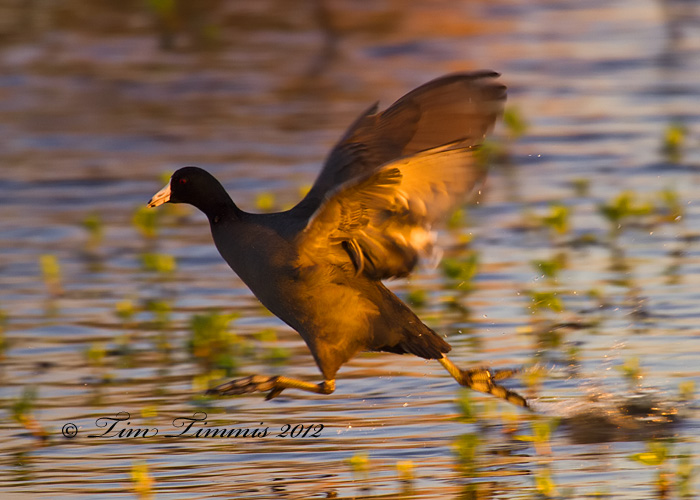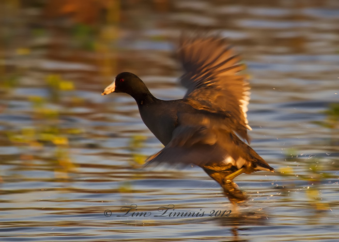 Here are some shots from last weekend at Brazos Bend of the resident coots. Found a decent spot to camp out along 40 acre lake and sat down with my tripod for about 1.5 hrs on Sat and Sun. Around sunrise, the coots come across the trail and head into the water and then the run out into the main part of the lake through the two openings in the far bank. I”ve always like to try to catch them while they are running on the water. Had to switch to the minimum focus distance on the 100-400 on the close up shots as they were very close. They are kind of cute close up with the ivory colored bill and red forehead and eyes.