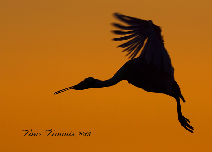 Found lots of Spoonbills flying around and was able to capture this one in silhouette as the sun was coming up. Used negative exposure compensation to help darken the scene.