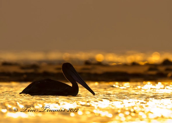 This brown Pelican was cruising by as I was taking some low-level Willet shots at Galveston’s east beach. I should have switched from Willet to Pelican silhouette mode as he swam towards the sun reflecting off of the water. I’d normally use evaluative metering for silhouette shots but had the camera set on spot metering instead. It still worked as the spot metering helped to darken the scene even though my exposure compensation was set at +2/3.