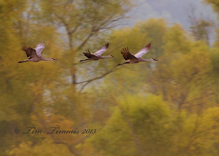 While taking my usual early morning tour of the Indiana countryside while on vacation, I rounded a corner while looking off to the left in a large field to see if any Sandhills were waiting for me. No luck on the left but suddenly caught a glimpse of something coming quickly from my right and three Sandhill cranes were flying right in front of my car. I locked up the brakes on the dirt road and missed them by a couple of feet at most. My reflexes are apparently still in tact as I was able to quickly hit the brakes and grab my camera on the seat at the same time to keep it from crashing into the dashboard. My life didn’t flash before my eyes but what did was the thought of having to tell my dad that I wrecked his car after getting hit by some very large birds. Luckily, that didn’t happen.