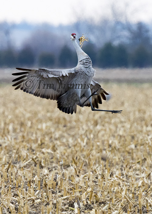 Some Cranes would pick up corn stalks from the ground and through them up into the air. Got several shots of this behavior.