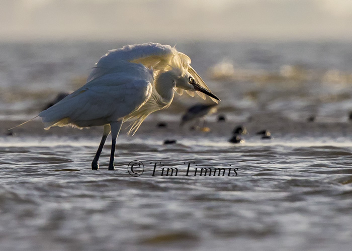White morph reddish egret at Bolivar Flats along the Texas gulf coast.